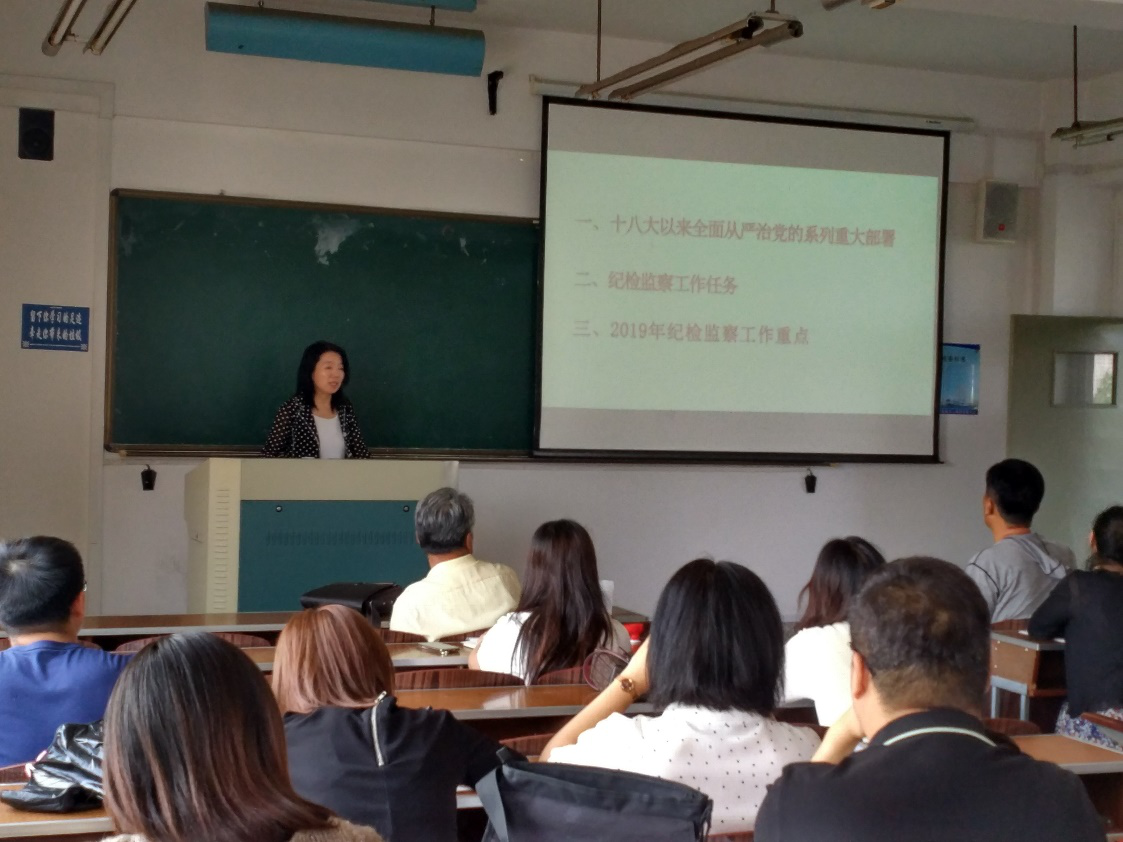 2019年6月12日,加拿大28开奖 纪检委员马文萍老师为学院全体教师党员及研究生党员上廉政党课。