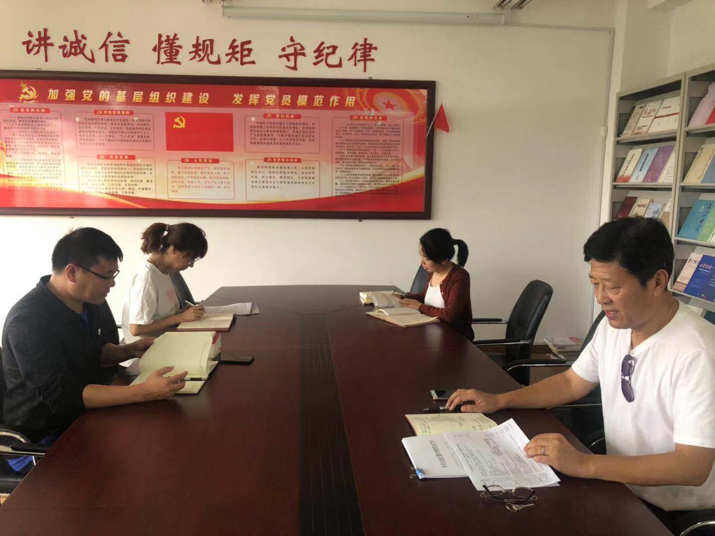领导班子在学院资料室开展“不忘初心,牢记使命”主题教育。