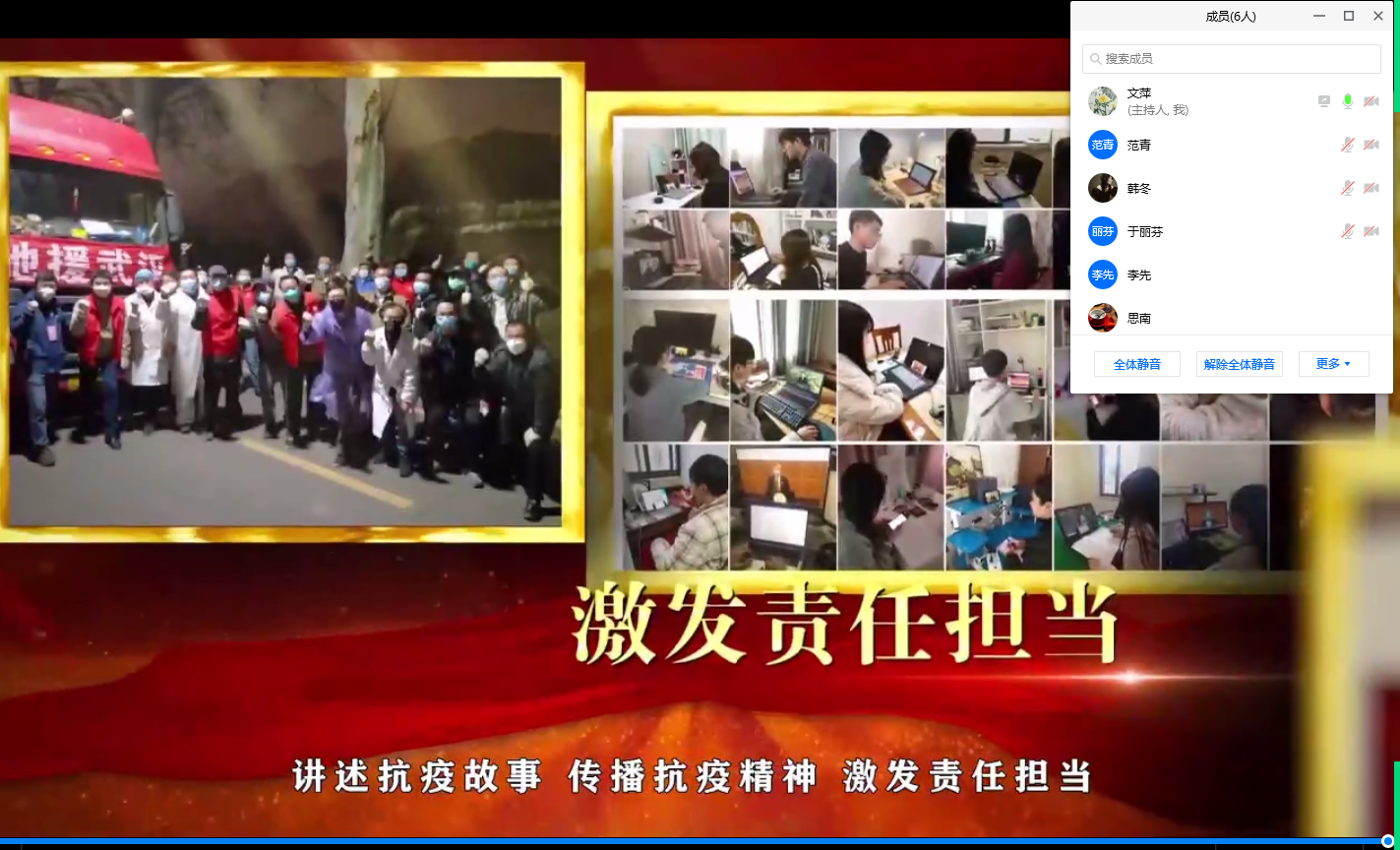 为深刻领会把握疫情防控展现出的中国力量、中国精神、中国效率,充分发挥高校基层党组织的战斗堡垒作用,2020年8月5日,周三上午10点,思想道德修养与法律基础党支部组织全体党员通过腾讯会议平台共同观看教育部组织的高校党组织战“疫”示范微党课第7讲。本期微党课由大连理工大学、长安大学、西北工业大学、中国传媒大学、南昌大学5校党委书记、支部书记、团委书记和医疗队队长联合开讲。