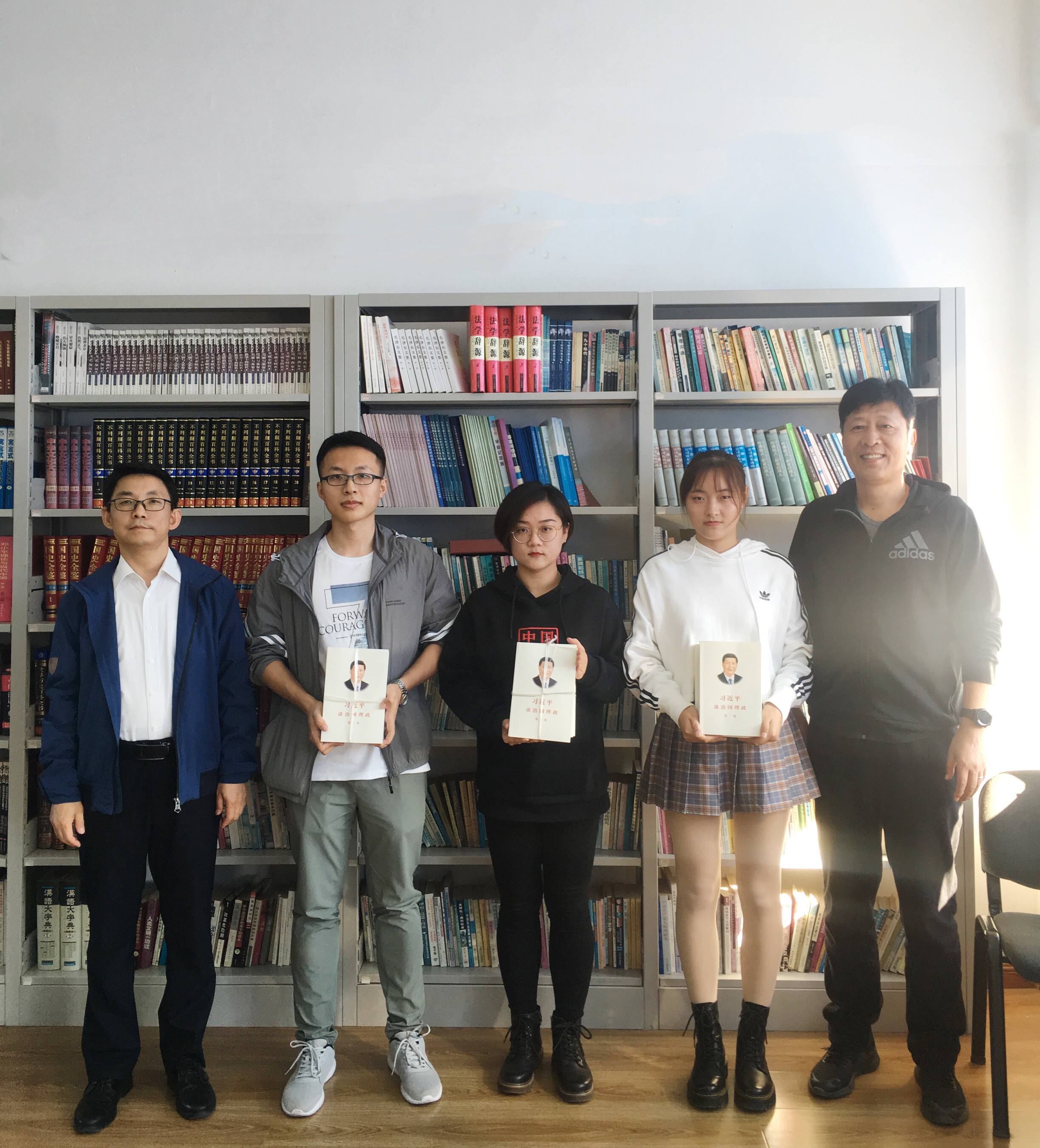 为培养学院学生学习马克思主义理论热情,会上还举行了赠书仪式。刘院长和王书记代表学院为2018级、2019级和2020级全体研究生赠送了《习近平谈治国理政》第一、二、三卷,勉励大家博学慎思,弘毅自强。