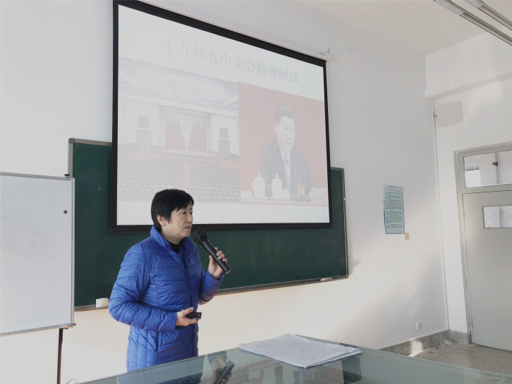 2020年12月16日下午,马克思主义中国化党支部关颖教授应邀为中国铁路太原局集团有限公司2020年度青年干部培训班进行党的理论培训,解读十九届五中全会精神。事实上,从事这样的理论宣讲已成为关颖同志的重要工作,其深入浅出的讲解每每受到学员的广泛好评。关颖教授也成为支部理论宣讲工作的典范。在其示范带动下,支部其他党员纷纷加入到理论宣讲之中。