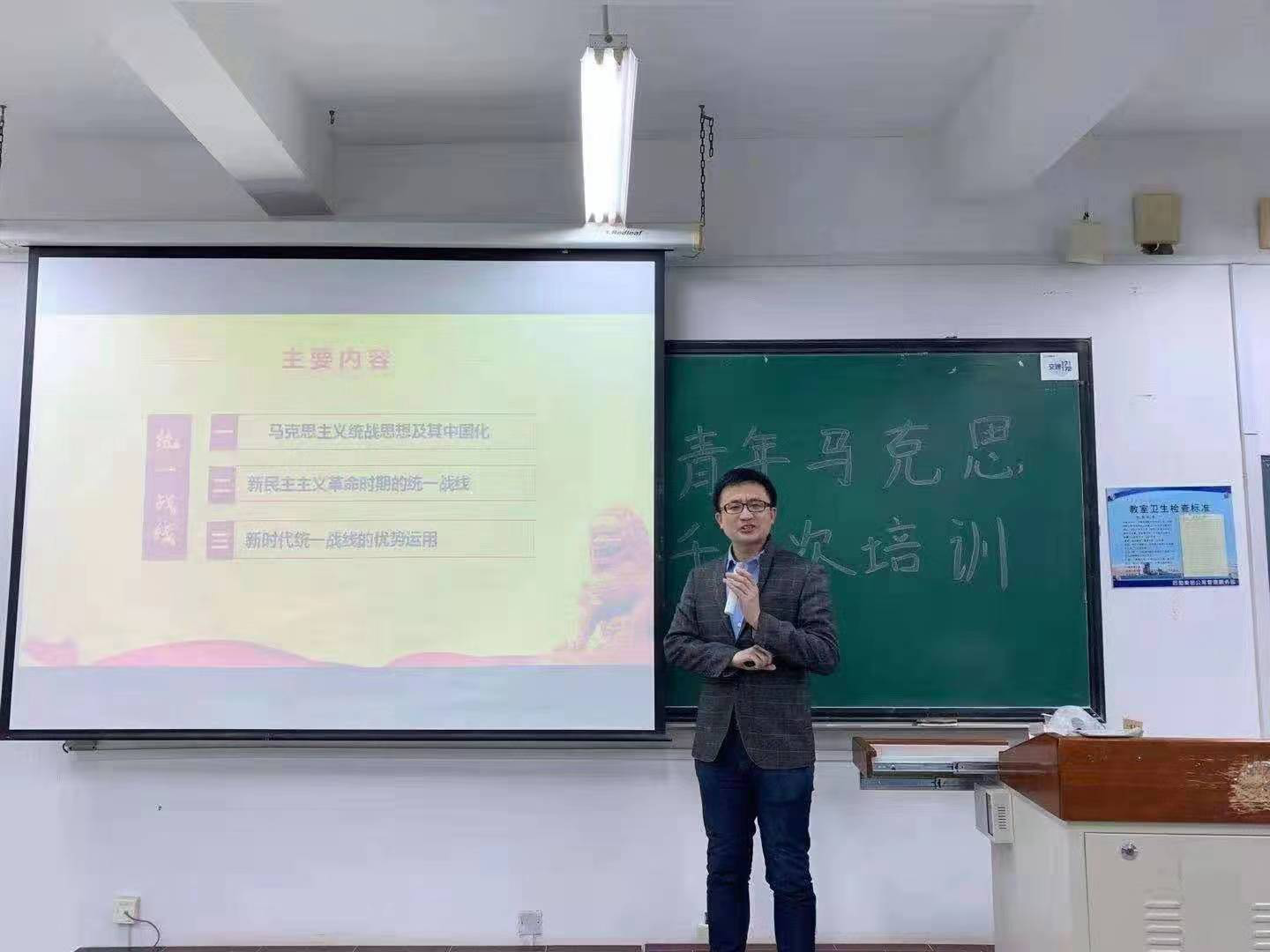 2020年11月25日,支部宣传委员张鹏同志应软件学院邀请以《统一战线 画好最大同心圆》为题进行“青马工程”千层次培训,使学生对新时代统一战线思想与实践有了深入的认识和理解。其铿锵有力的话语在学生当中形成有力共鸣。