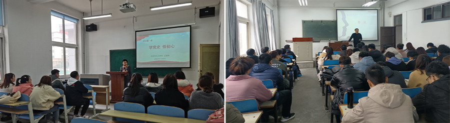 在研究生的“开学第一课”中,关颖教授“新起点、新征程”为题,梳理了中国共产党历史上的重要会议及重大意义,并结合党的十九届五中全会精神向同学们介绍我党如何以理论的守正创新,推进实践的稳中有进。张杰教授以“社会主义五百年”的视角,引导学生铭记中国共产党百年奋斗的光辉历程,深刻认识中国共产党为国家和民族做出的伟大贡献。王世进副教授以“掌握马克思主义精髓、立志做优秀研究生”为题,勉励学生们在学习和科研过程中,以学术研究为本职,科技创新为使命,服务国家为追求,不忘初心和使命,奋发图强。王晶梅副教授在“马克思主义中国化研究”课堂上,以“学党史、悟初心”为题,将党史与马克思主义中国化发展历程的紧密结合进行了专题讲解,勉励研究生投身马克思主义理论学习和研究,以优异的学习成绩向中国共产党百年华诞献礼。