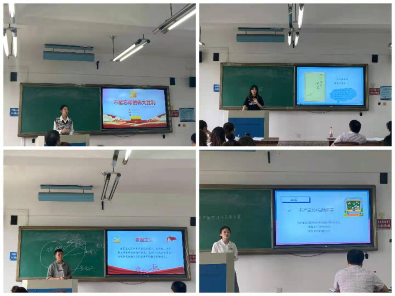经过2021级研究生的现场投票,高丹同学的《不能忘却的伟大胜利》、王星予同学的《人为什么有信仰》和黄士泽同学的《立足民族,面向世界》以及谭佳琪同学的《实现共产主义是历史发展的必然》脱颖而出,获得一等奖,他们的精彩表现赢得了老师和同学的一致好评。